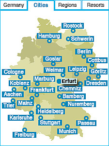 ErfurtSites to seeThe Cathedral, “Krämerbrücke” – historic stone bridge from 1325 with half-timbered houses, Saint Augustin Monastery where Martin Luther lived for a few years and became a priest, medieval old town, Petersberg Citadel Things to doJoin a sightseeing tour with a historic street car through the medieval centre of the town, enjoy medieval food at an original chevalier table, stroll along the medieval Michaelisstrasse with its bars and restaurants, take a walk through the Deer Garden (Hirschgarten) and explore its renaissance-baroque palace from 17th century. How to get thereWith express trains from Munich, Frankfurt, Berlin and Leipzig-Airport. |