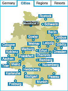 HamburgSites to seeThe harbour and its gangplanks, St. Michael Church, Alster Lake, Miniature Wonderland (the largest model railroad layout in the world), town hall, historic branch office houses from the Hanseatic League, old storehouse district along the harbour with its many bridges Things to doShop in the elegant city centre, take a cruise through the huge harbour and its remarkable Maritime Museum, take a boat trip on the Alster Lake, enjoy the nightlife on the “Reeperbahn”, relax at the sandy beaches of the river Elbe, take an excursion with a speed boat to the island of Helgoland in the North Sea, visit the fish market in the very early morning, visit the “Kunsthalle Hamburg” with its impressive collection of contemporary art or the “Deichtorhallen”-House of Photography. How to get thereDirect flights from overseas and connections from all major European airports, by German railway express trains from Frankfurt and Berlin, or with international trains from Scandinavia, Prague and Amsterdam. |