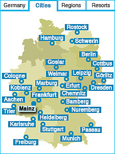 MainzSites to seeThe historic city centre, the Main Cathedral, the Chagall windows at St. Stephan’s Church, Rococo Church of St. Augustin, Electors Castle, the New Synagogue, the Parliament Building Things to doVisit the Johannes-Gutenberg Museum with its exhibition of books from the early days of printing, stroll through the beautiful old town with its Medieval and Renaissance architecture, visit the Museum of Ancient Sea Faring, take a cruise on the river Rhine and taste the wine of one of Germany’s most important vineyard regions. How to get thereFrom the international airport in Frankfurt in a short train ride, by fast train from Hamburg, Cologne or Basle. |