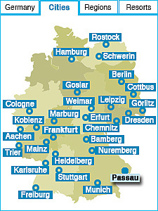PassauSites to seeSt. Stephen´s Cathedral, Lamberg Palais, Old Residence Castle, historic city centre with town hall Things to doVisit the confluence of the Danube, the Ilz and the Inn rivers, enjoy the sound of the world´s biggest organ at St. Stephen´s Cathedral, relax and take long walks in the nearby Bayerischer Wald National Park. How to get thereFrom international airports in Munich, Prague, Salzburg or Vienna or by fast train from Frankfurt, Cologne, Hamburg, Berlin or Vienna. |