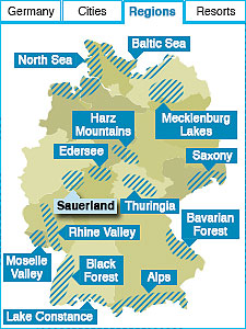 SauerlandSites to seeFort Fun and Panorama Park Theme Parks, Castle Altena, Palace Herdringen, Atta Flowstone Cave, Ramsbeck Mining Museum, Warsteiner Brewery Things to doWater sports on the Hennesee- or the Biggesee Lake, bike and hike in the hills and forests, amuse yourself with go-kart races or coastal slides, take excursions to Cologne, Düsseldorf or the Ruhr region as well as to the Kellerwald-Edersee region How to get thereBy train from international airports in Cologne, Düsseldorf, or Frankfurt |